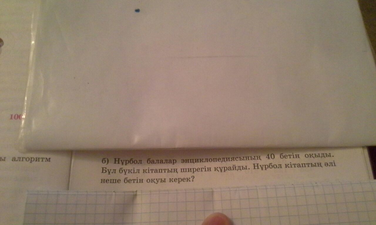Нұрбол балалар энциклопедиясының 40-бетін оқыды. Бұл бүкіл кітаптың ширегін құрайды. Нұрбол кітаптың әлі неше бетін оқуы керек?