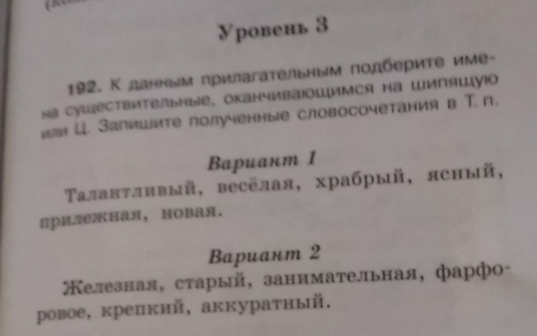 к данным прилагательным подбери имена существительные оканчивающимся на шипящую или ц запиши получение слово сочетания в тварительном падиже помоги мне пожалуйста умоляю два варианта