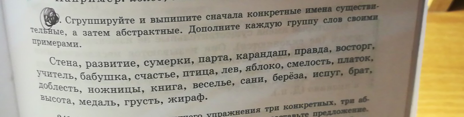 существительные :стена, парта, карандаш, учитель, бабушка, птица, лев, яблоко, платок ножницы, книга, сани, берёза, брат, медаль и жираф.