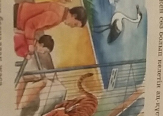 Бугин Айдос сыныппен хайанаттар багына барады. Сол жерде олар тырналарды аккуларды корди. Балалардын коби жолбарыска карады. Балалар котеринки книл коймен уге кайтты.