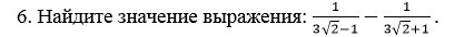 потом внизу. (3√2-1)(3√2+1)=(3√2)^2-1^2=9•2-1=17 ответ 6√2/17. у. меня камера не работает