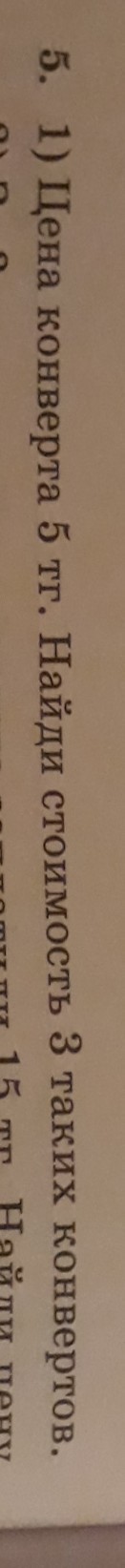 5*3=15 конверт стоит 5 их 3 надо пермножить получиться 15 или просто 5+5+5=15
