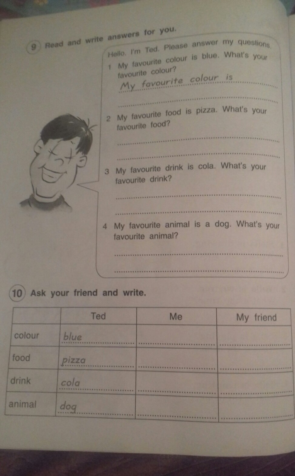 номер 10 пишешь что сверху и что любит твой друг просто напиши слова