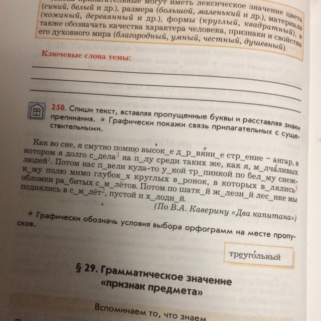 Спиши текст, вставляя пропущенные буквы и расставляю знаки препинания. Графически покажи связь прилагательных с существительными.