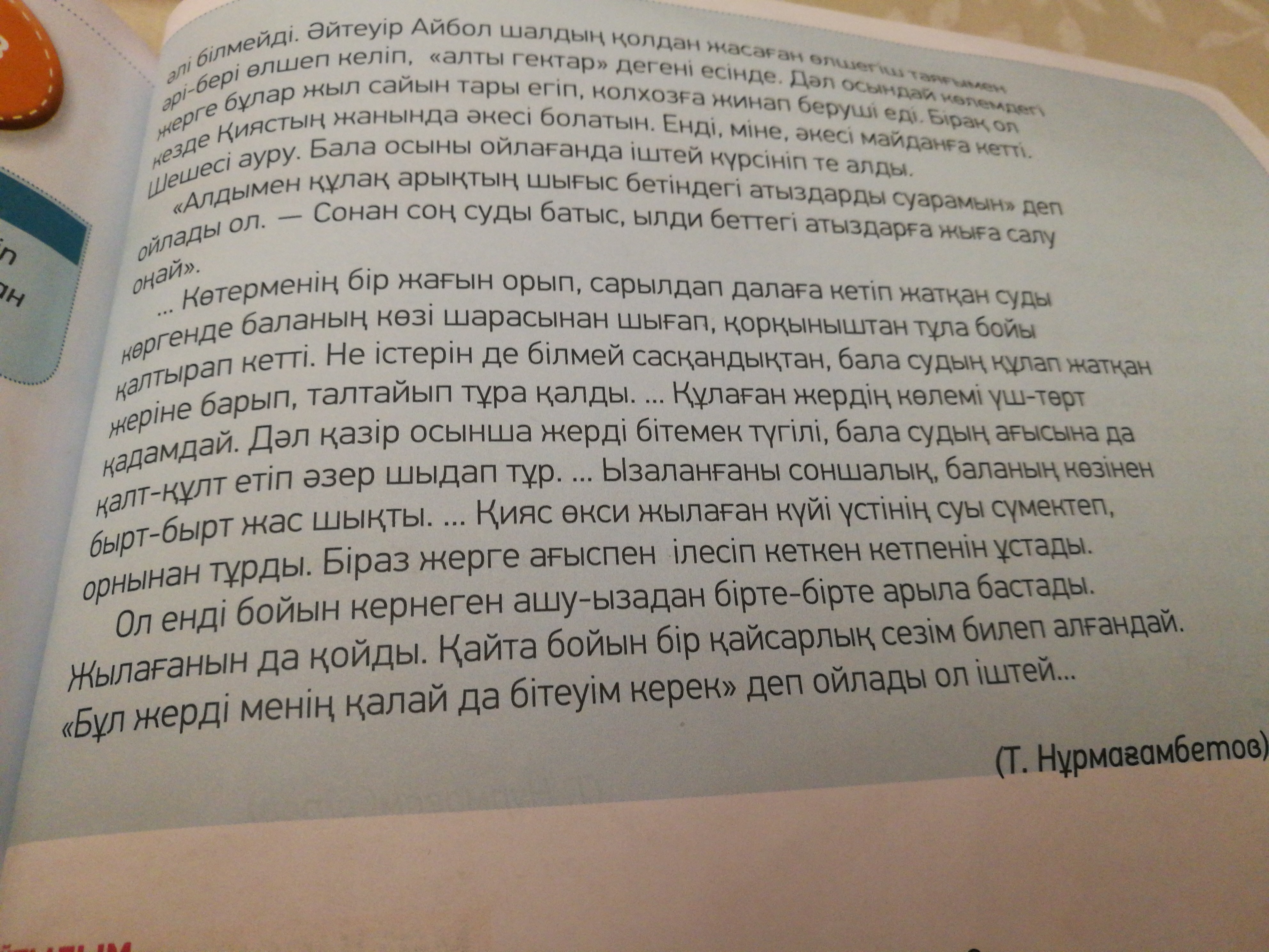 Когда дело дошло до поля, солнце поднялось, и алая ткань начала распространяться. Мальчик похоронил куртку воды со дна ямы и похоронил ее в земле на краю канавы. Это было бы узнано от нее. Мальчик наклонился к плечу и взглянул на гумно, опустив несколько семян на спину. Кияс еще не знает, сколько гектаров оно есть. В то же время Айбол помнит, что он сделал с измерительной палочкой, которую он сделал, и он вспомнил шесть гектаров. В том же размере они сеют каждый год. сбор ферм. Но в то время он был отцом Кияса. Теперь. здесь. Его отец вышел на фронт. Ее мать болен. Мальчик был в восторге от этого.