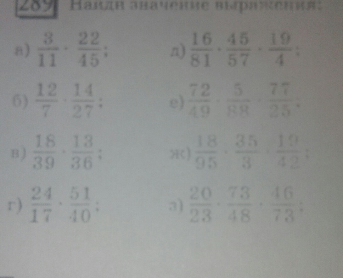1) 2/15 2) 8/9 3) 1/6 4) 9/5 5) 20/27 6) 9/35 7) 1 8) 5/6 только смотри внимательно где можно сократить сократи советую Photomath