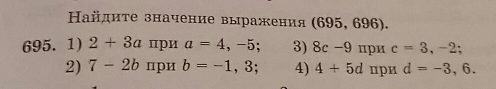 Найдите значения выражения с переменными : 1) 2 + 3a при a = 4, - 5