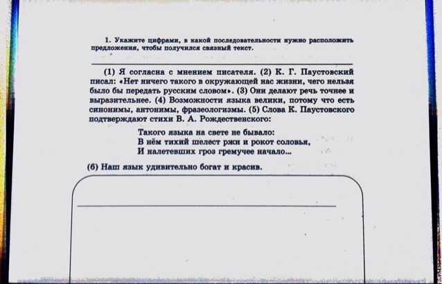 Последовательность написания предложений; 6, 4, 3, 2, 1, 5.