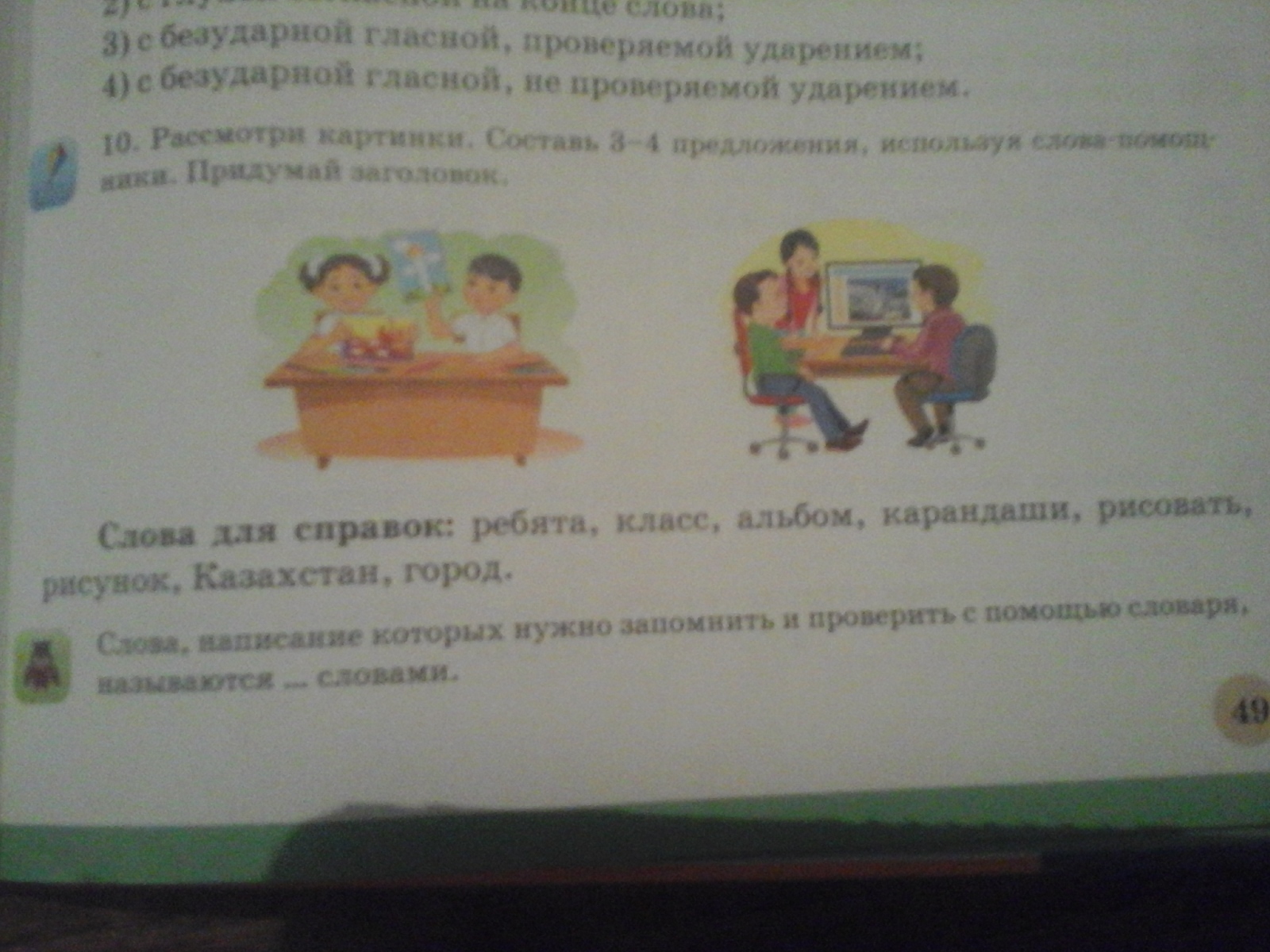 Слова для справок: ребята, класс, альбом, карандаши, рисовать, рисунок, Казахстан, город.