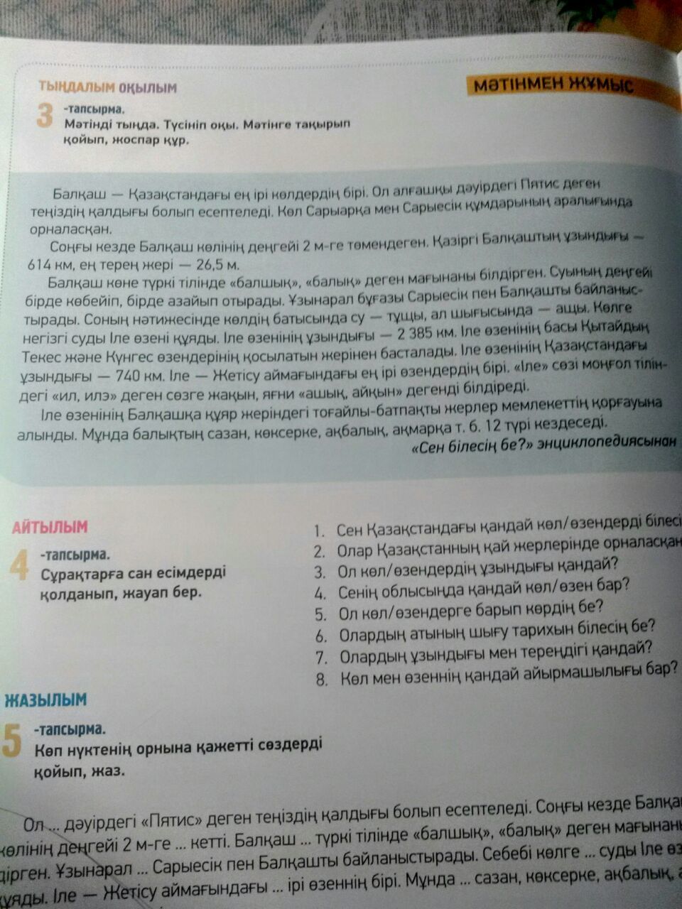 2)көлдің батысындағы су қандай?(ответ-тұшы)