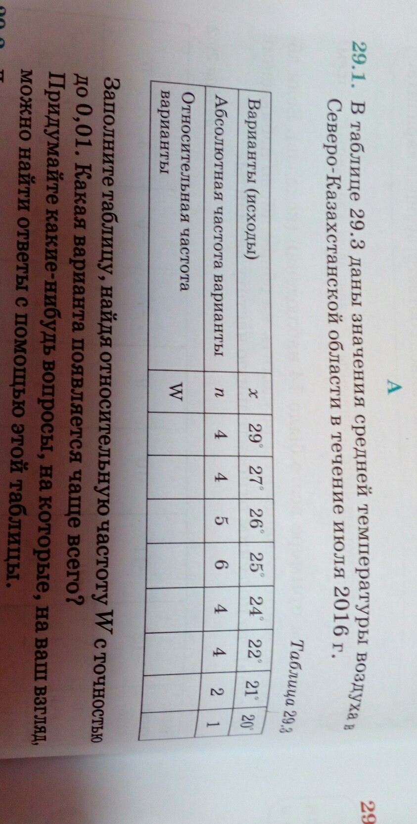 В таблице 29.3 даны значения средней температуры воздуха в Северо-Казахстанской области в течение июля 2016 г.