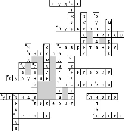 Кроссворд по географии 7 класс на тему "Африка" ,только государства и столицы! Минимум 22 объекта)Спасибо)
