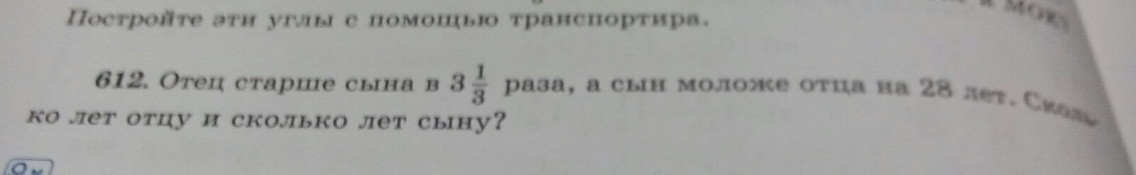 Сыну 12 лет, отцу 40 12*3=36 +1/3 = 40