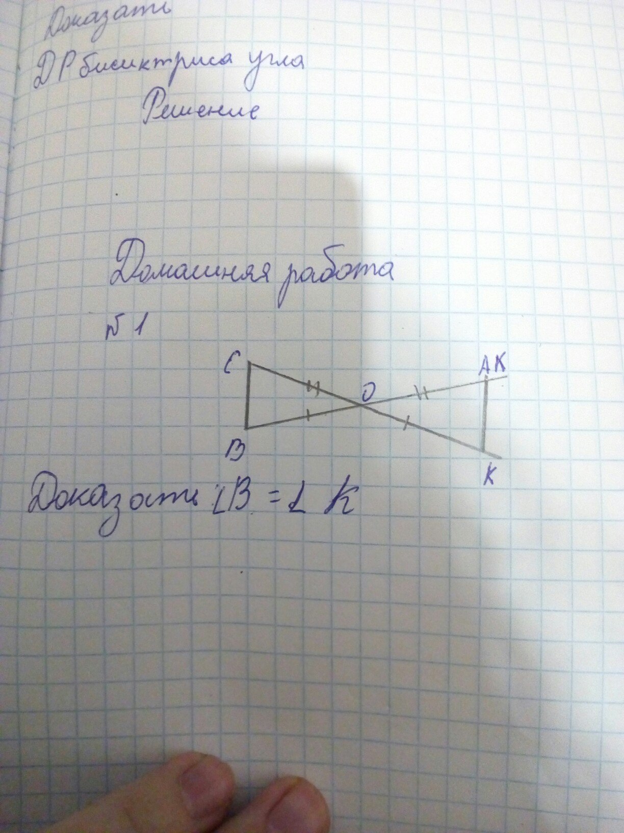 Треугольник COB равен треугольнику AOK по двум сторонам и углу между ними. Из этого делаем вывод, что угол B= углу К (так как соответственные элементы в равных треугольниках равны)
