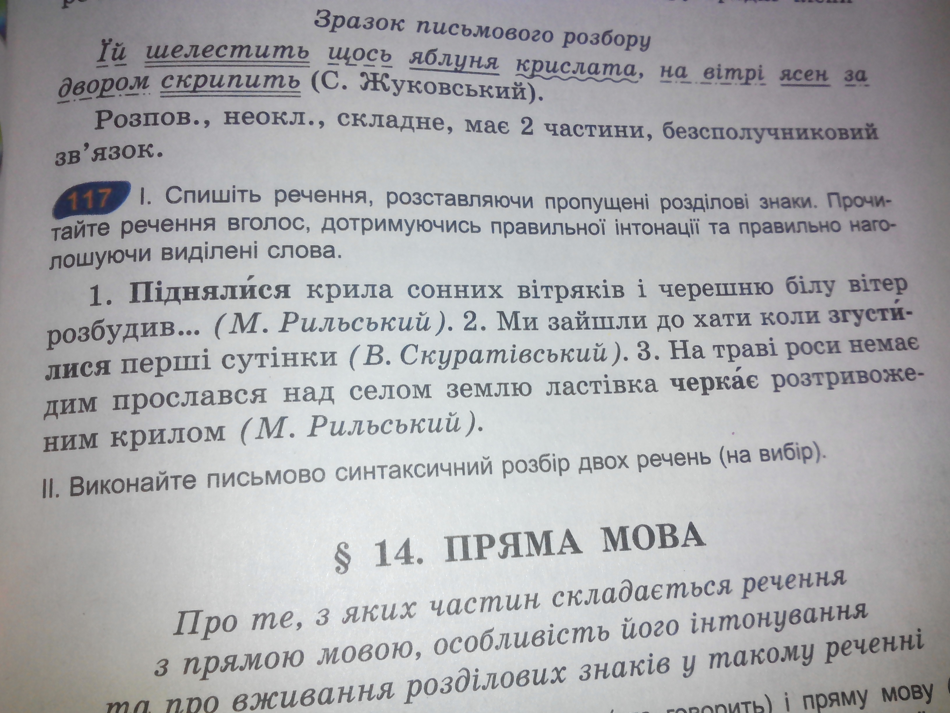 Піднялися, крила сонних вітряків.І черешню білу вітер розбудив... .2. Ми зайшли до хати, коли згустилися перші сутінки.3. На траві роси немає.Дим прослався над, селом землю ластівка черкає, розтривожиним крилом.