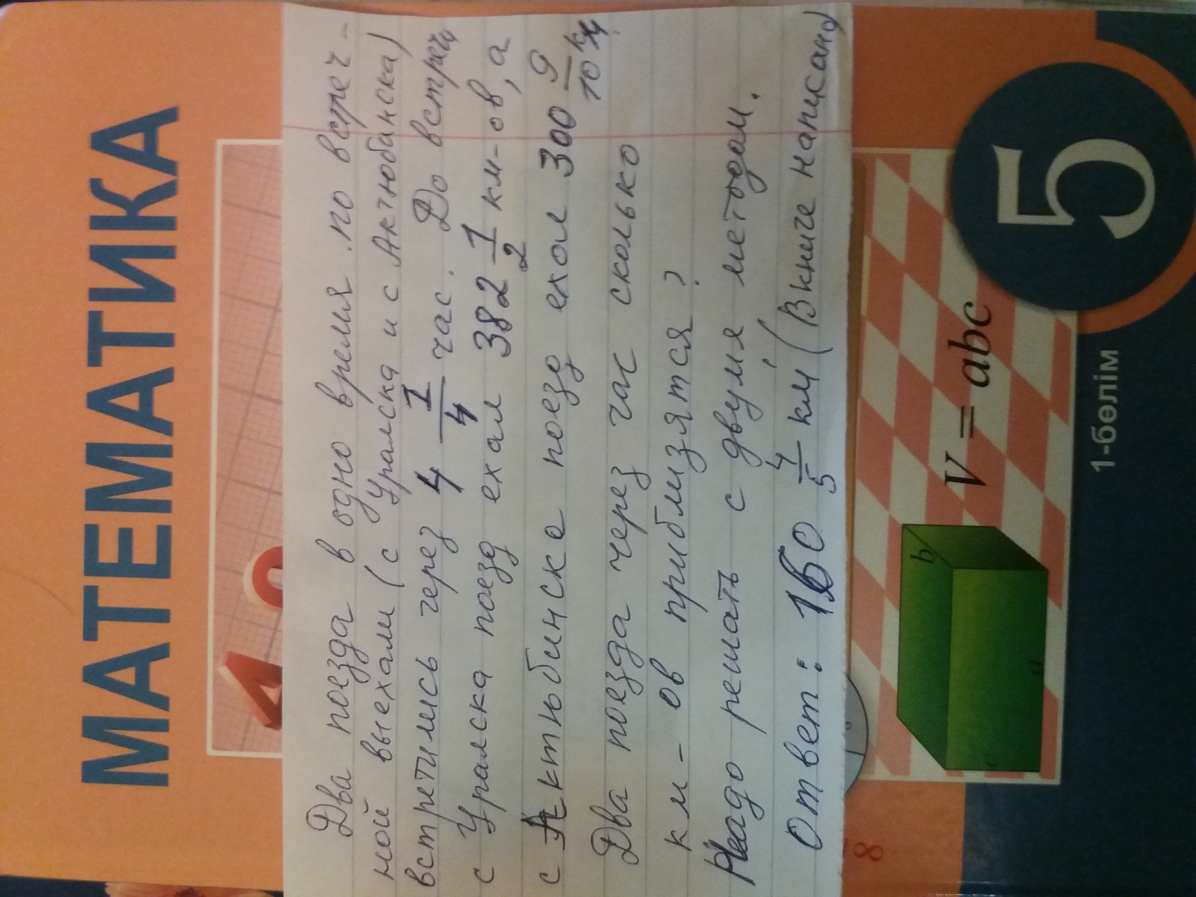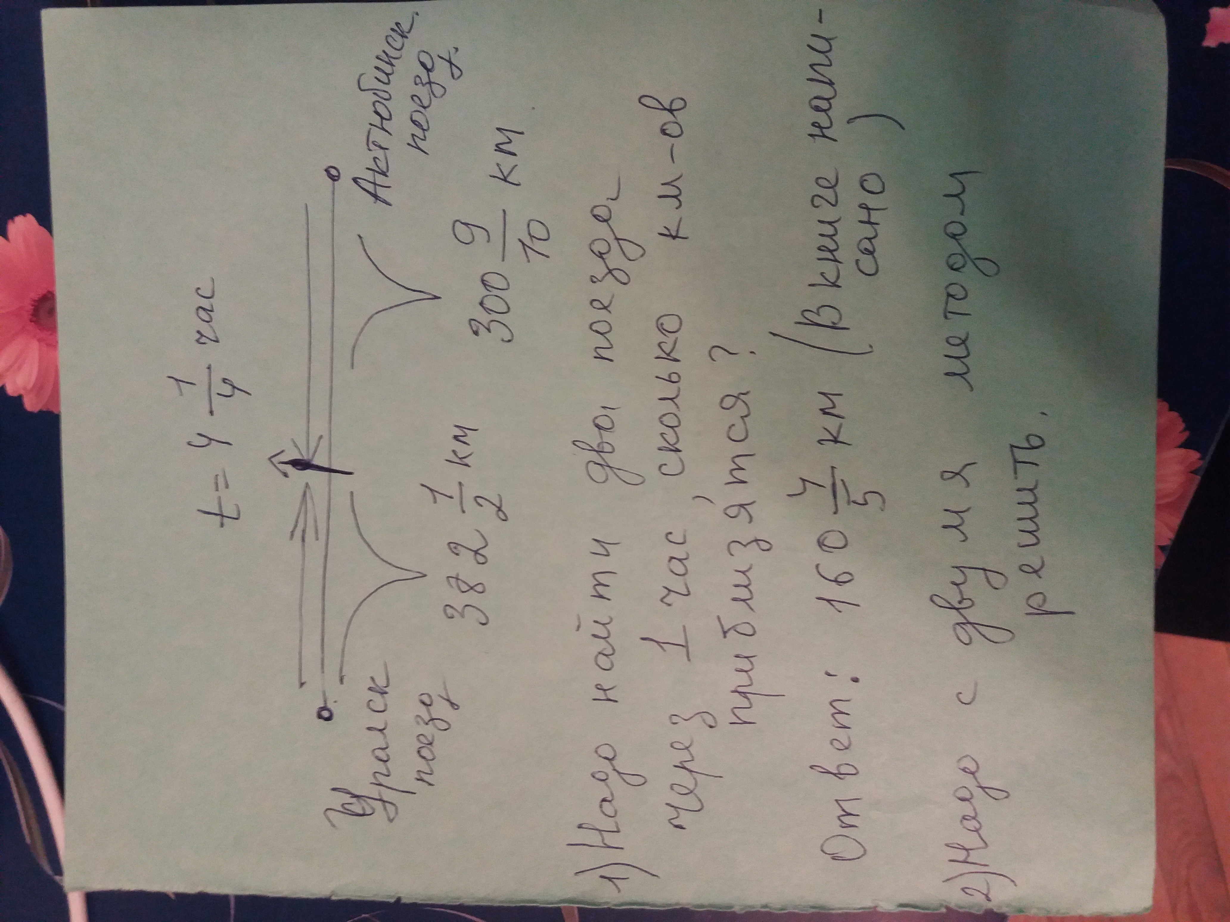 Есть два варианта решение: ответ написан в книге: 160 4/5 км Помогите пожалуйста...