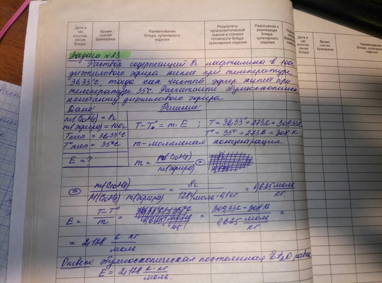 . Раствор , содержащий 8 г нафталина С10Н8 в 100 г диэтилового эфира кипит при температуре 36,33, тогда как чистый эфир кипит при температуре 35 С. Определит ебулиоскопичную константу эфира.