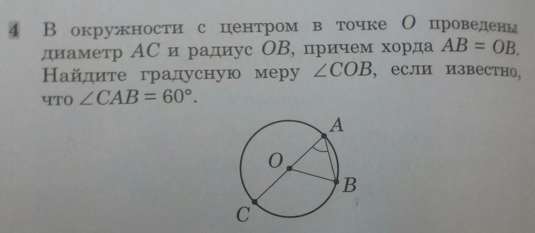 Т.к. AB=OB (по условию). Следовательно ∠CAB=∠AOB (по свойству)