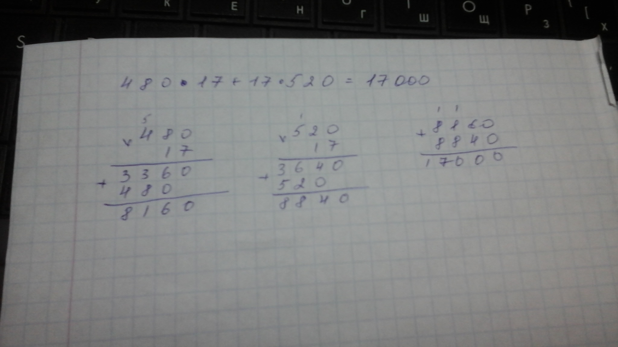 480 х 17 +17 х 520 = 17 х (480+520) = 17 х 1000 = 17 000