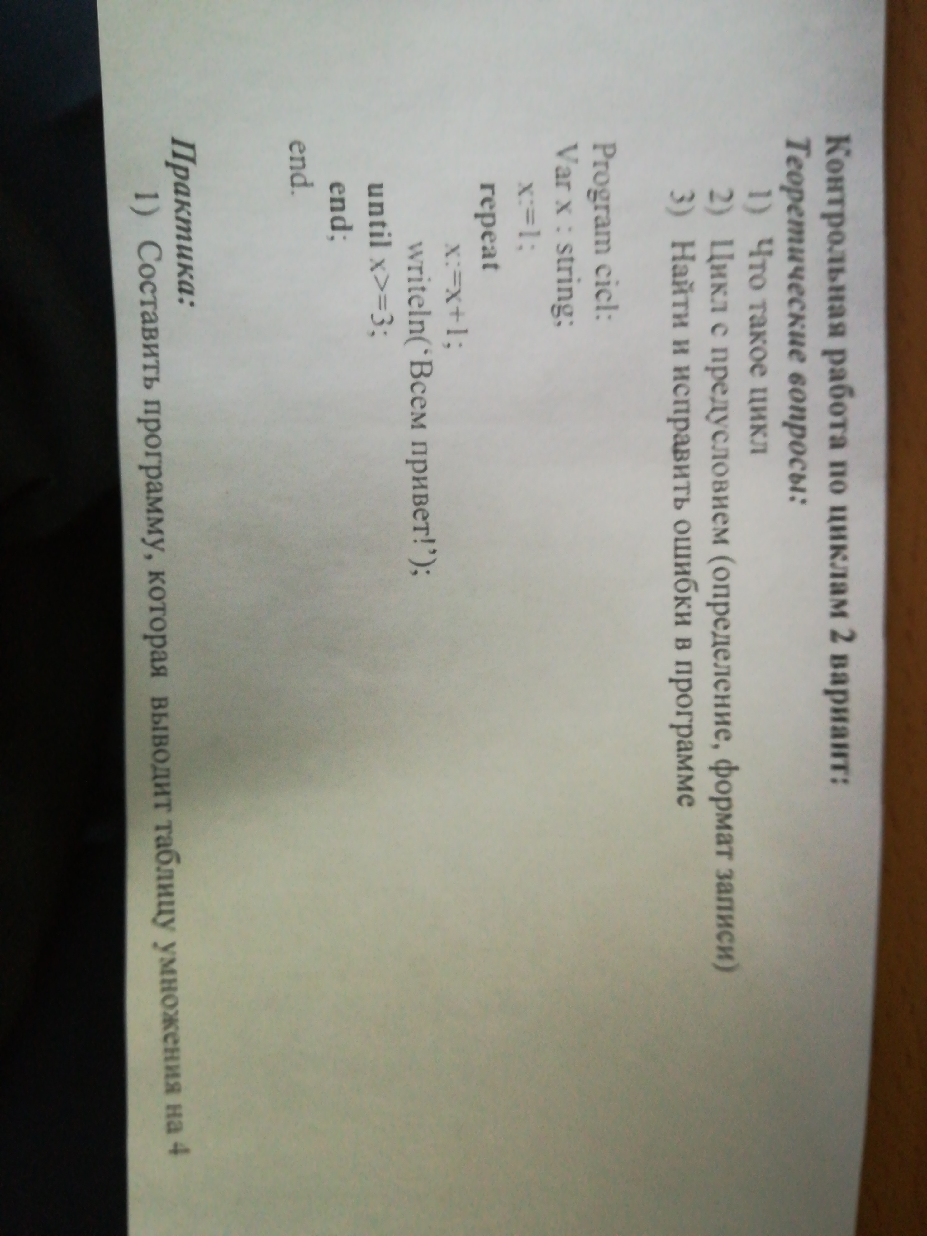 Помогите с 3 заданием. Там нужно найти ошибку в программе. Срочно нужно.
