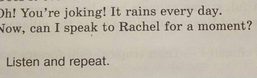 Ерэ джокинг ,Ит раинс эври дэй .Нау ,кэн ай спик ,ту рэйчел фо э момент
