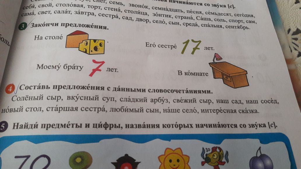 Мыши не любят солёный сыр. Я сегодня сварила очень вкусный суп. Папа купил довольно сладкий арбуз. В магазине я нашла самый свежий сыр. В нашем саду Саша посадил маленькую яблоню. Наш сосед очень не любит кошек. Родители купили новый оранжевый стол. Сегодня старшей сестре купили наушники. Я всегда любила своего любимого сына. В нашем селе сегодня будет вечеринка. Я прочла очень интересную и поучительную сказку.