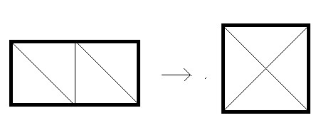 Берем треугольники и складываем вершинами к центру - получаем квадрат.(выглядит как конверт с обратной стороны)