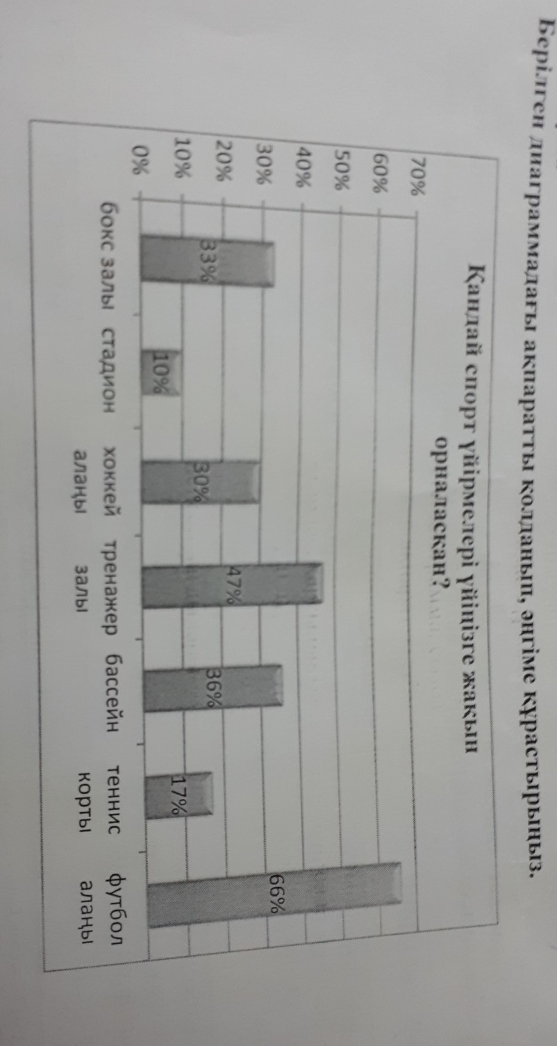Жақын арада қаламыздағы теледидар қызметкерлері халық арасында «Қандай спорт үйірмелері үйіңізге жақын орналасқан?» деген сауалнама өткізген болатын. Сол сауалнаманың нәтижелері төменде келтірілген, ендеше таныса отырайық.