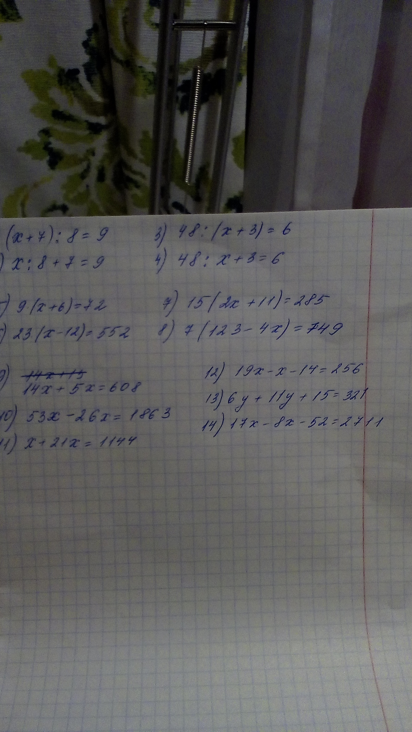 1)(х+7):8=9 2)х:8+7=9 4)Не могу 5)9(х+6)=72 6)23(х-12)=552