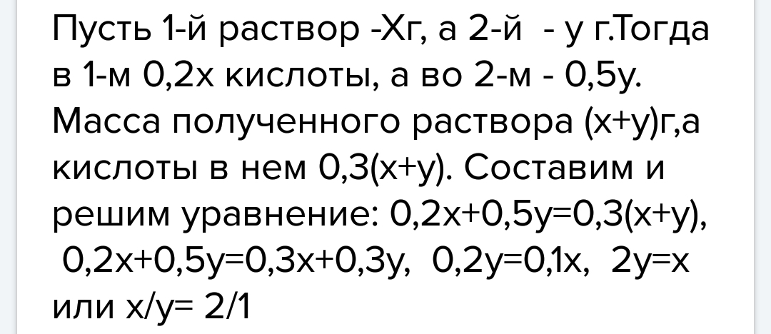 При смешивании первого раствора кислоты, концентрация которого 30%, и второго раствора этой же кислоты, концентрация которого 50%, получили раствор, содержащий 45% кислоты. В каком отношении были взяты первый и второй растворы?