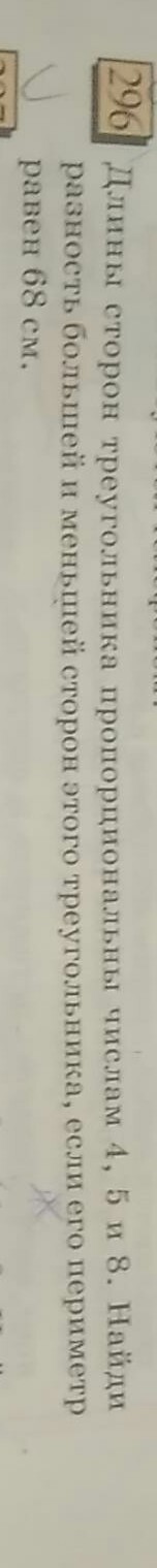 Пусть хсм- одна часть. тогда 4х- первая сторона, 5х- вторая сторона, 8х- третья сторона. т.к. Р=68 см, то составляем уравнение:
