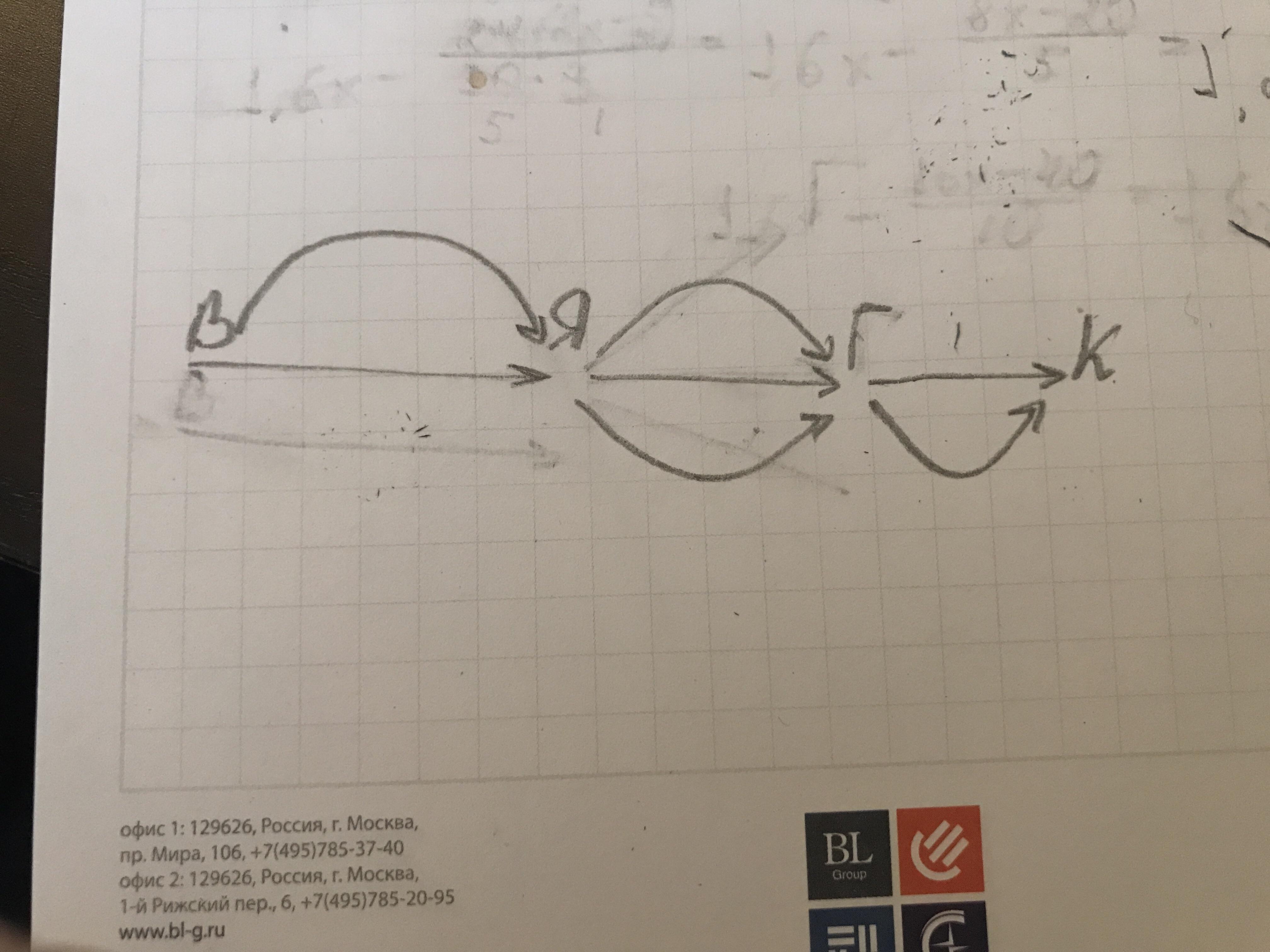 Из вешнёвого в яблонево есть 2дороги из яблоневого в грушевое-3дороги а из грушевого в кукурузное-2 сколькими разными способами можно добраться из внешнёвого в кукурузное