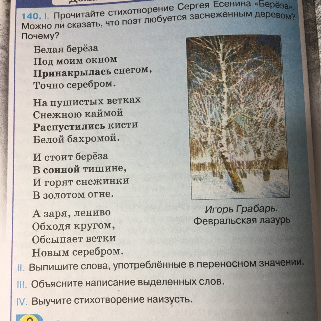 1.Да можно так сказать.Потому что поэт очень красиво описывает берёзу накрытую снегом.