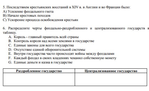 Распределите черты феодально-раздробленного и централизованного государств в таблицу