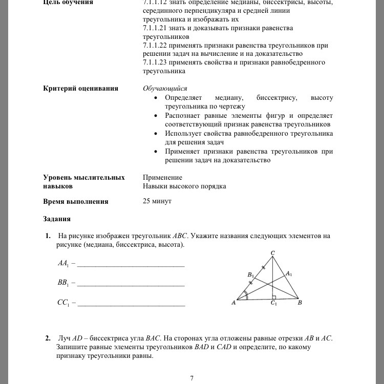 1.AA1биссектриса BB1 медиана CC1 высота2. AD общая BD=DC BA=AC ПО ТРЕМ СТОРОНАМ