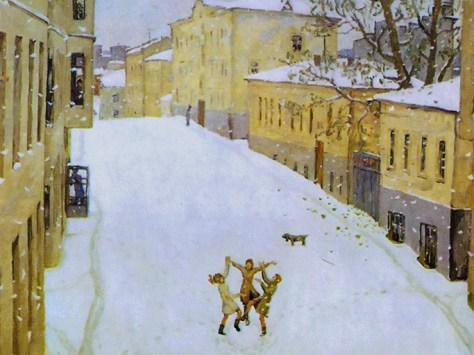 Тихо и сказочно было в городе. Безмолвие нарушал лишь смех трех девчонок. Взявшись за руки, они весело прыгали посреди улицы, подставляя румяные щеки и ладошки снежным хлопьям. Щенок одной из подруг опасливо нюхал первый в своей жизни снег.