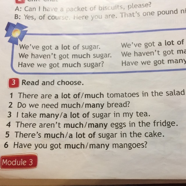 пояснение many для исчесляемых существительных допустим два помидора три помидора much для не исчесляемых существительных .. сахар мы ведь не скажем два сахара или три сахара но мы можем сказать два кубика сахара но тут мы уже считаем кубиками а не просто как два помидора или три а a lot of он и для исчесляемых и для не исчесляемых неисчесляемых