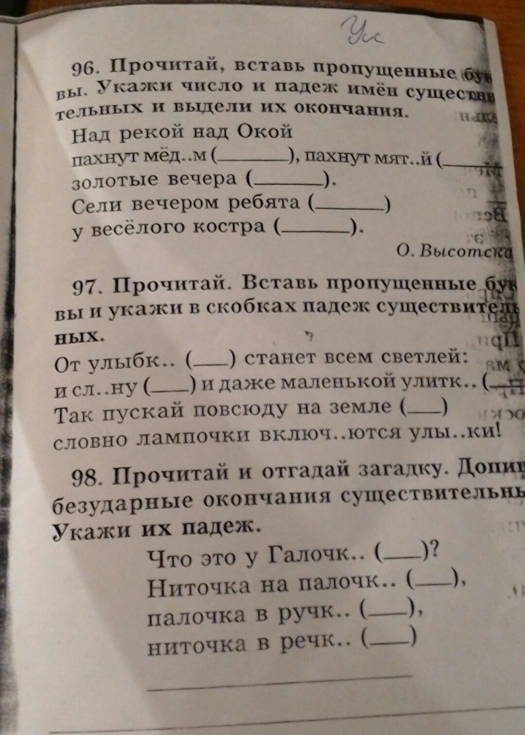 98. Галочки (Р.п), на (на чём?) палочке (П.п), в (в чём?) ручке (П.п), в (в чём?) речке (П.п)