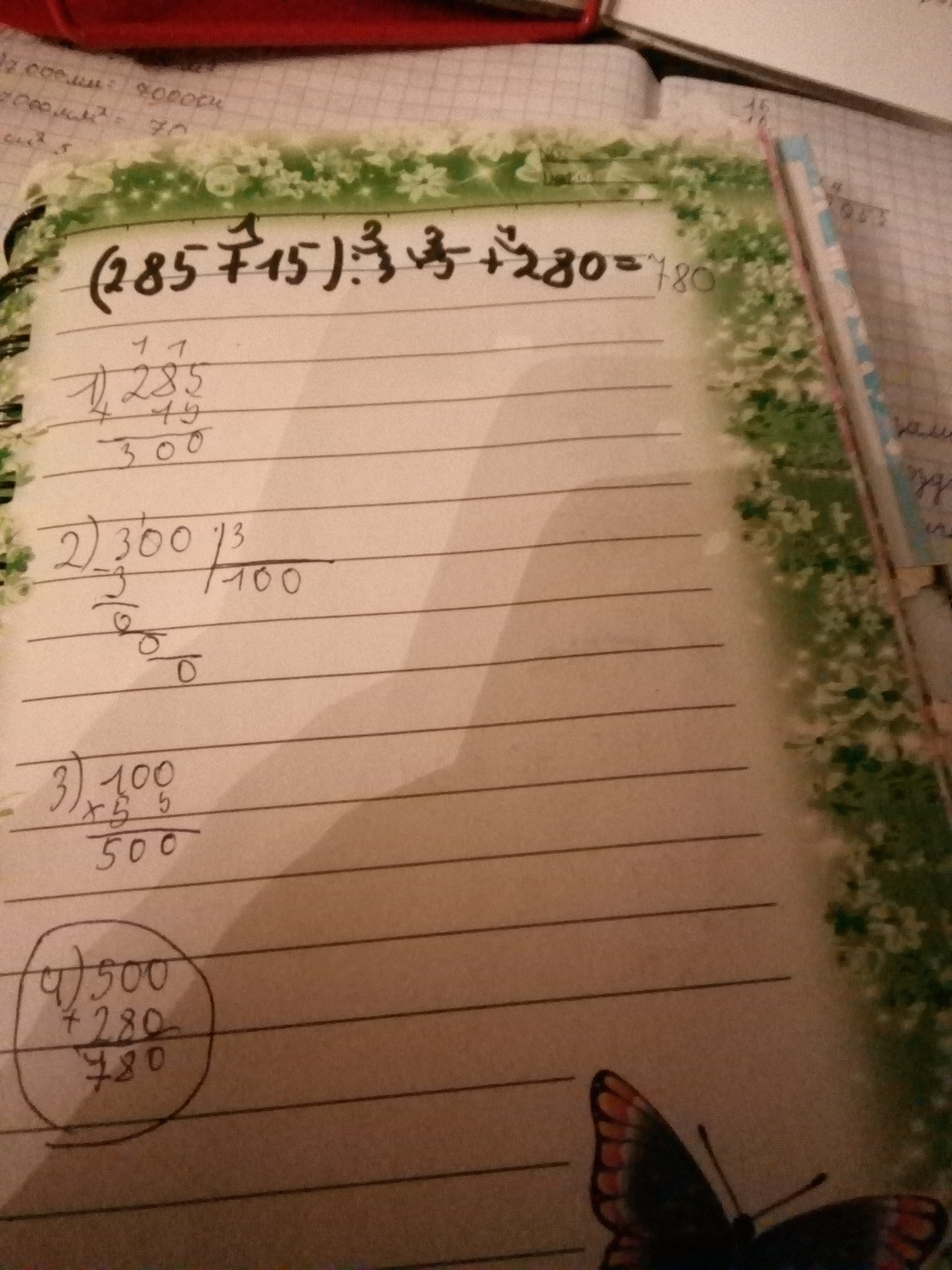 A)(285+15)÷3*5+280=300÷3=100*5=500+280=780