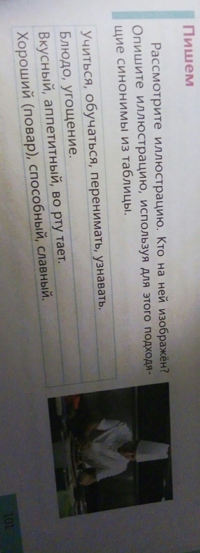 На картинке видно, что повар занят приготовлением какого-то блюда. Не могу сказать точно, что это, но выглядит весьма аппетитно. (И я бы не прочь попробовать на вкус это угощение).
