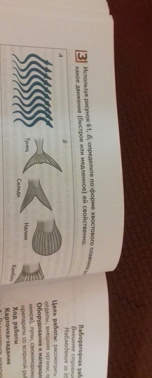 Используя рисунок 61 Б Определите по форме хвостового плавника рыбы Какое движение быстро или медленно идёт свойственное