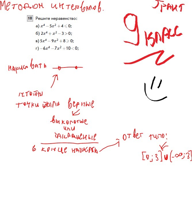 а) x^4 - 5x^2 + 4 = (x^2 - 4)(x^2 - 1) = (x+2)(x-2)(x+1)(x-1) <= 0