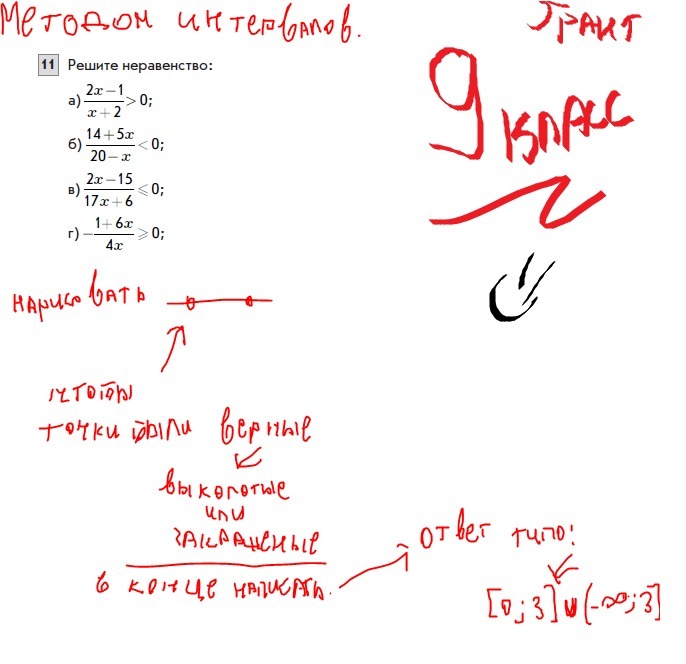 Методом интервалов. 9 класс. Решается оно быстро. Как-то кратко пишем на уроках.