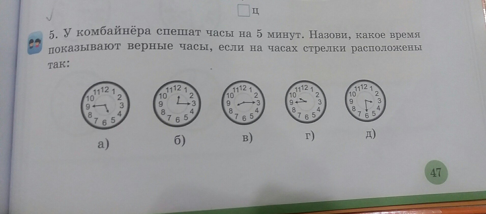 у комбайнёра спешат часы на 5 минут