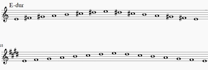 В гамме Ми мажор 4 диеза: фа, до, соль, ре.