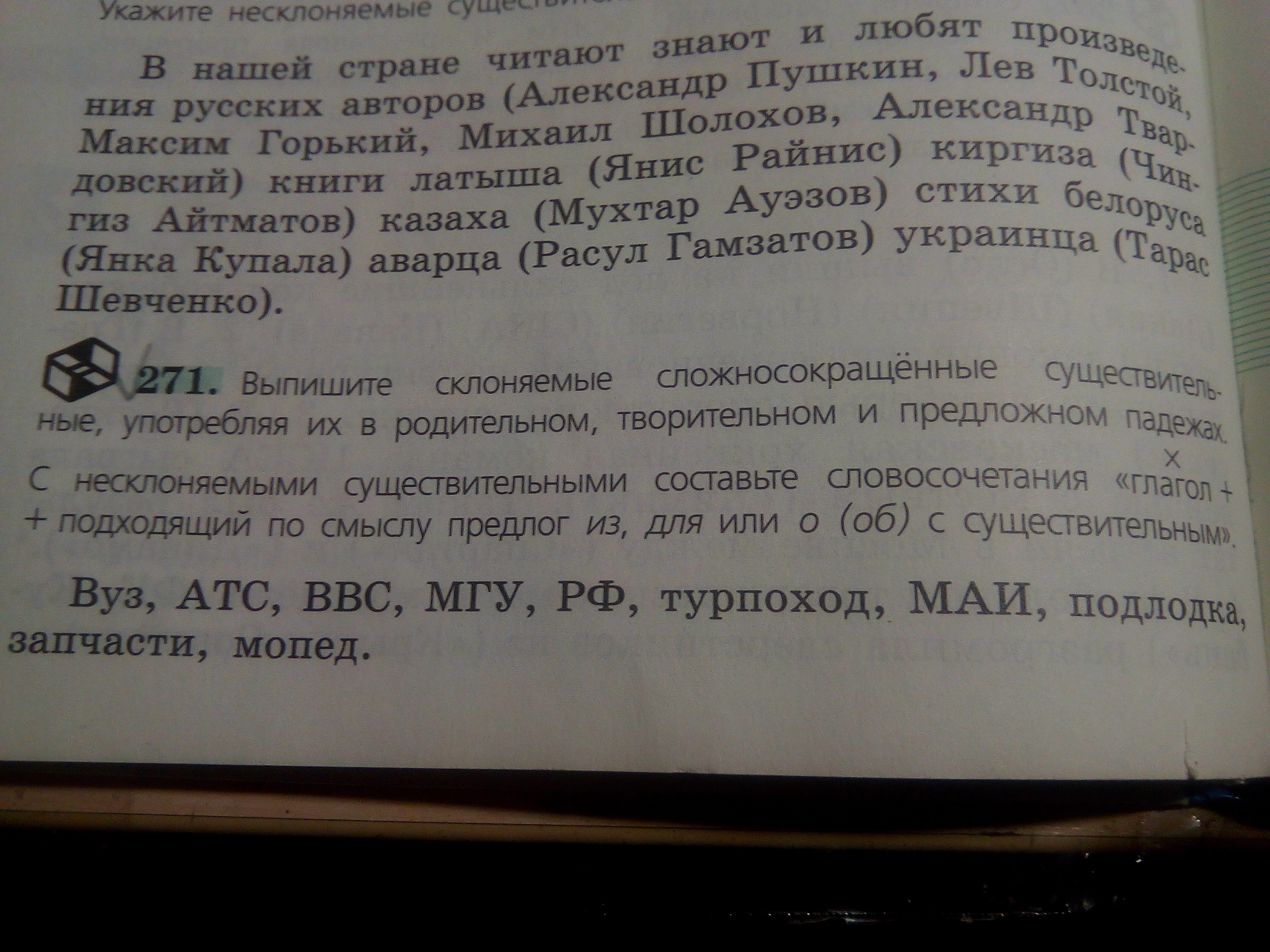 Вуз(Р.п), вузом(Т.п), в вузе(П.п), турпохода(Р.п), турпоходом(Т.п), в турпоходе(П.п), подлодки(Р.п), подлодкой(Т.п), в подлодке(П.п), запчасти(Р.п), запчастями(Т.п), в запчастях(П.п), мопеда(Р.п), мопедом(Р.п), о мопеде(П.п).