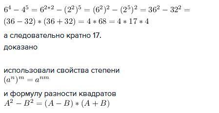 6⁴ - 4⁵= 2⁴ *3⁴ - (2²)⁵= 2⁴ *3⁴ - 2¹⁰= 2⁴*(3⁴ -2⁶) =2⁴(81-64)=2⁴ *17