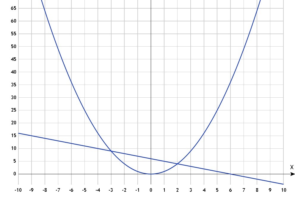 Есть система 1) y = x^2 и 2) y = 6 - x