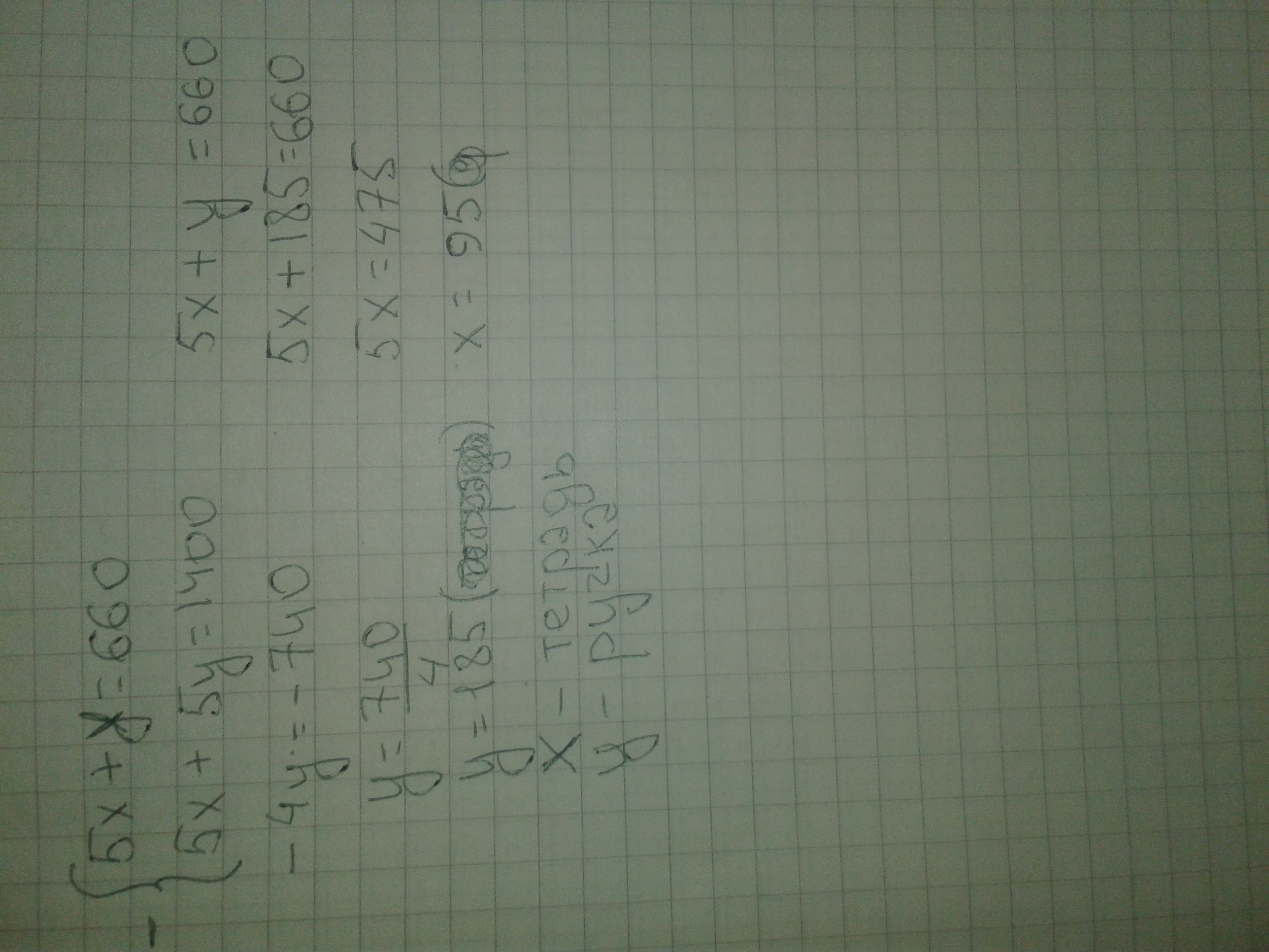 5 тетрадей стоят 660-185=660-200+15=475 рублей и одна тетрадь стоит 95 рублей.