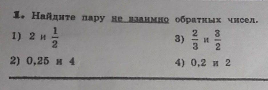 4) ответ. потому что , 0,2 это 1/5 . взаимно обратные это Х=1/У. 1/(1/5) равно 5 . значит 0,2 и 2 не взаимно обратные